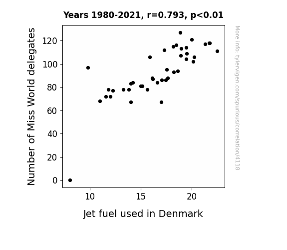 Instead of starting with a hypothesis and testing it, I isntead tossed a bunch of data in a blender to see what correlations would shake out. It’s a dangerous way to go about analysis, because any sufficiently large dataset will yield strong correlations completely at random. - Lack of causal connection: There is probably no direct connection between these variables, despite what the AI says above.