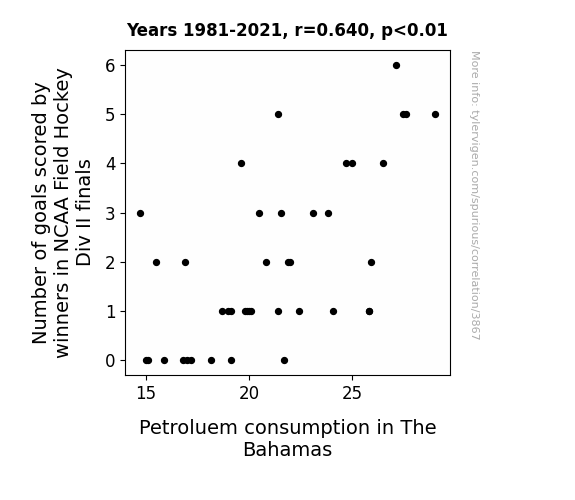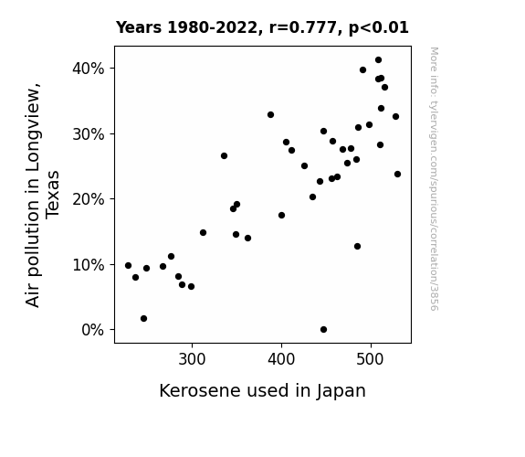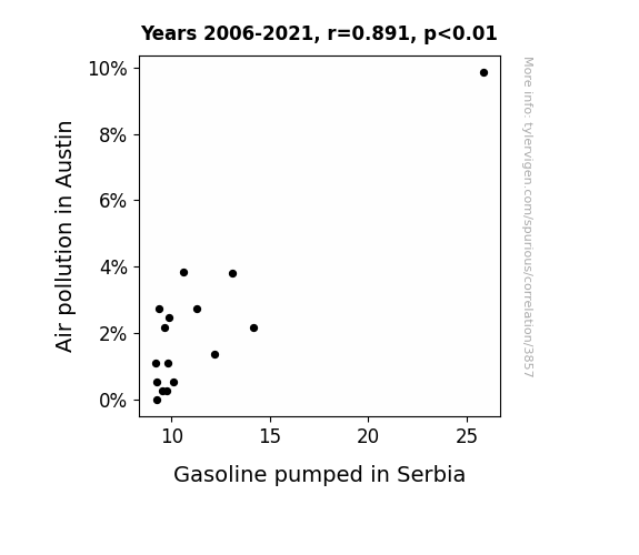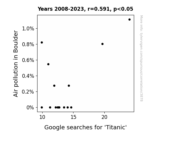 This is exacerbated by the fact that I used "Years" as the base variable. Lots of things happen in a year that are not related to each other! Most studies would use something like "one person" in stead of "one year" to be the "thing" studied. - Observations not independent: For many variables, sequential years are not independent of each other. You will often see trend-lines form. If a population of people is continuously doing something every day, there is no reason to think they would suddenly change how they are doing that thing on January 1. A naive p-value calculation does not take this into account.