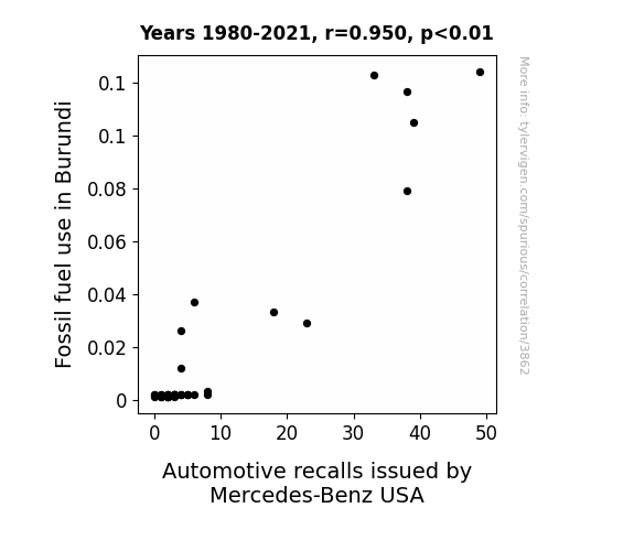 Instead of starting with a hypothesis and testing it, I isntead tossed a bunch of data in a blender to see what correlations would shake out. It’s a dangerous way to go about analysis, because any sufficiently large dataset will yield strong correlations completely at random. - Lack of causal connection: There is probably no direct connection between these variables, despite what the AI says above.