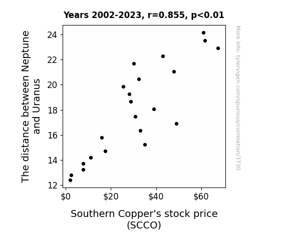 Instead of starting with a hypothesis and testing it, I isntead tossed a bunch of data in a blender to see what correlations would shake out. It’s a dangerous way to go about analysis, because any sufficiently large dataset will yield strong correlations completely at random. - Lack of causal connection: There is probably no direct connection between these variables, despite what the AI says above.