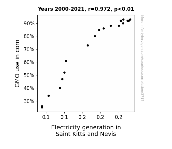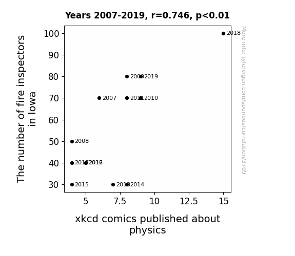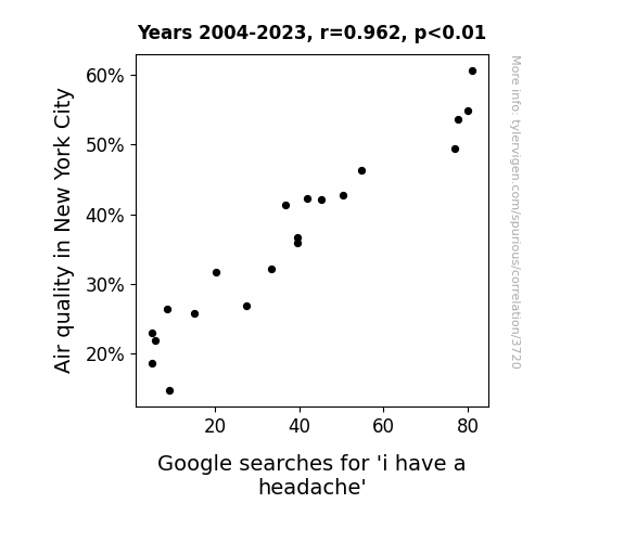 This is exacerbated by the fact that I used "Years" as the base variable. Lots of things happen in a year that are not related to each other! Most studies would use something like "one person" in stead of "one year" to be the "thing" studied. - Observations not independent: For many variables, sequential years are not independent of each other. You will often see trend-lines form. If a population of people is continuously doing something every day, there is no reason to think they would suddenly change how they are doing that thing on January 1. A naive p-value calculation does not take this into account.