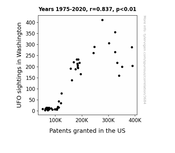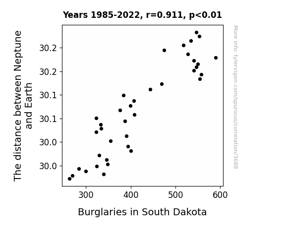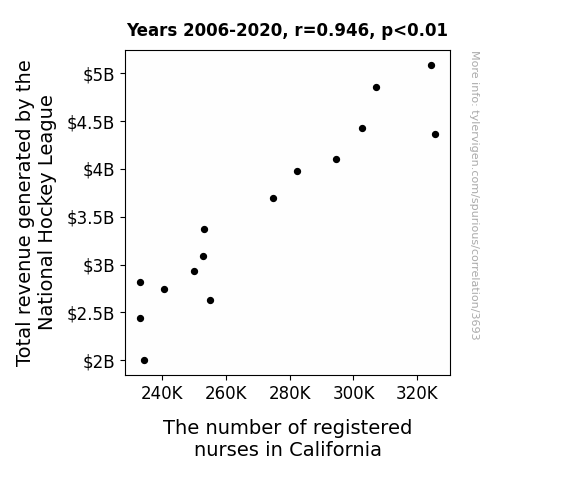 This is exacerbated by the fact that I used "Years" as the base variable. Lots of things happen in a year that are not related to each other! Most studies would use something like "one person" in stead of "one year" to be the "thing" studied. - Observations not independent: For many variables, sequential years are not independent of each other. You will often see trend-lines form. If a population of people is continuously doing something every day, there is no reason to think they would suddenly change how they are doing that thing on January 1. A naive p-value calculation does not take this into account.