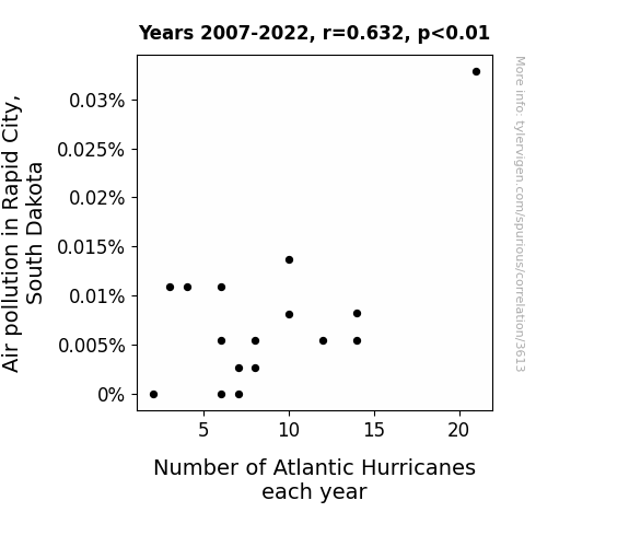 This is exacerbated by the fact that I used "Years" as the base variable. Lots of things happen in a year that are not related to each other! Most studies would use something like "one person" in stead of "one year" to be the "thing" studied. - Observations not independent: For many variables, sequential years are not independent of each other. You will often see trend-lines form. If a population of people is continuously doing something every day, there is no reason to think they would suddenly change how they are doing that thing on January 1. A naive p-value calculation does not take this into account.