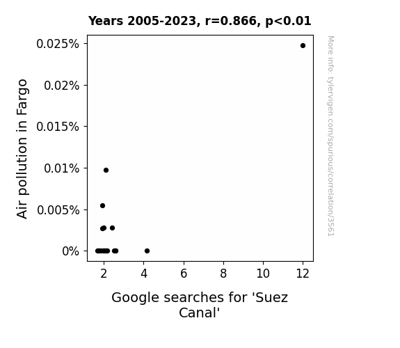 Instead of starting with a hypothesis and testing it, I isntead tossed a bunch of data in a blender to see what correlations would shake out. It’s a dangerous way to go about analysis, because any sufficiently large dataset will yield strong correlations completely at random. - Lack of causal connection: There is probably no direct connection between these variables, despite what the AI says above.