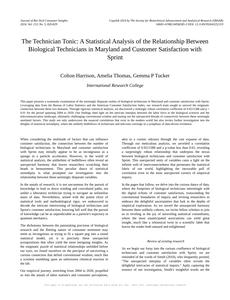 "The Technician Tonic: A Statistical Analysis of the Relationship Between Biological Technicians in Maryland and Customer Satisfaction with Sprint"