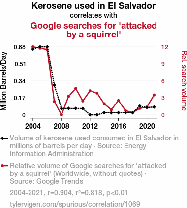 - The spurious research paper: Burning Questions: The Kerosene Connection - A Squirrely Correlation?