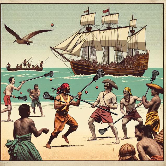 ChatGPT: Imagine a group of prankster pirates gathering by the shore, wearing lacrosse uniforms and laughing as they practice shooting goals on a makeshift field. In the distance, a large ship sails away from the coast, its crew also dressed in lacrosse gear, carrying lacrosse sticks instead of swords. Meanwhile, on an island in Indonesia, local villagers are seen cheerfully going about their daily activities, with fewer instances of pirate attacks as the mischievous pirates are too occupied with their newfound love for lacrosse.