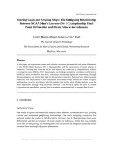 Scoring Goals and Stealing Ships: The Intriguing Relationship Between NCAA Men's Lacrosse Div I Championship Final Point Differential and Pirate Attacks in Indonesia The Journal of Sports Piratology Jan 2024 Reminder: This paper is AI-generated. Not real! |