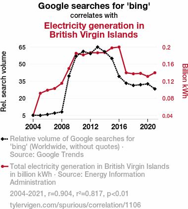 - The spurious research paper: Baffling Bing: British Virgin Islands' Bizarre Balance between 'Bing' Searches and Blended Electricity Generation