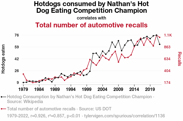 - The spurious research paper: The Link between Franks and Recalls: The Hotdog-Eat-Recall-Feed Multicorrelation