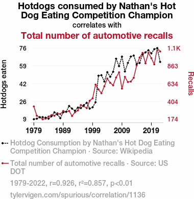 hotdog consumption, Nathan's Hot Dog Eating Competition, automotive recalls, correlation, statistical analysis, competitive eating, automotive safety, Wikipedia data, US Department of Transportation data