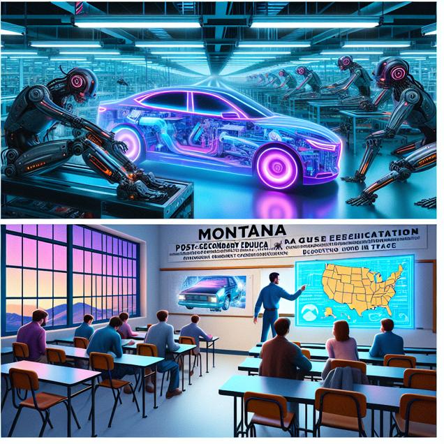ChatGPT: Imagine a bustling automobile factory with an assembly line churning out commercial vehicles at an increased pace. Meanwhile, in a college classroom in Montana, a once-busy psychology lecture hall now sits mostly empty as some of the professors have transitioned to other career paths. The remaining few psychology teachers are seen discussing the psychological effects of road rage and traffic congestion on drivers, reflecting the shift in focus in the field of psychology.