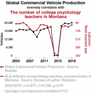 - The spurious research paper: Studying the Psychology of Commercial Vehicles: A Correlation Examination of Global Commercial Vehicle Production and the Number of Psychology Professors in Montana