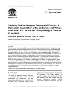 Studying the Psychology of Commercial Vehicles: A Correlation Examination of Global Commercial Vehicle Production and the Number of Psychology Professors in Montana The International Journal of Transportation Psychology Jan 2024 Reminder: This paper is AI-generated. Not real! |