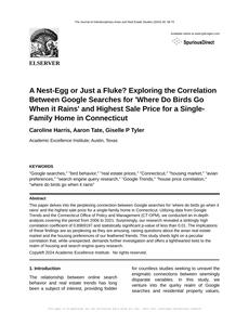 "Google searches," "bird behavior," "real estate prices," "Connecticut," "housing market," "avian preferences," "search engine query research," "Google Trends," "house price correlation," "where do birds go when it rains"