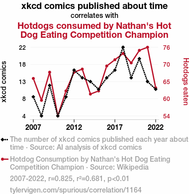 - The spurious research paper: Time and Frankfurters: A Rhyming Analysis of xkcd Comics and Nathan's Hot Dog Eating Contest Victories