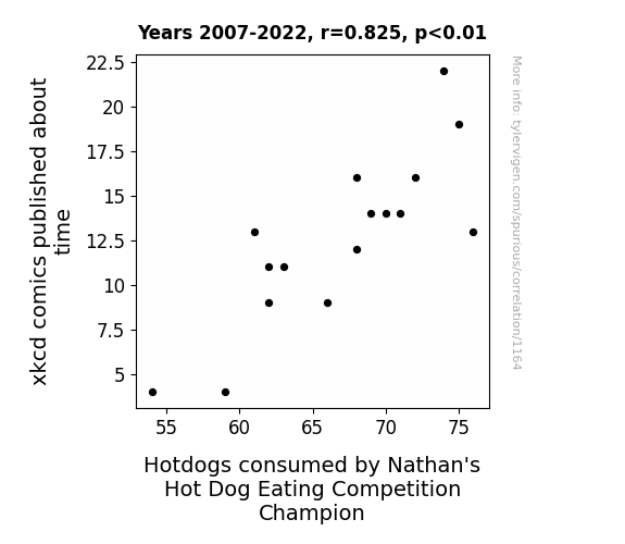 In addition, it is worth noting that the unexpected nature of this correlation adds an element of novelty and whimsy to the research findings, akin to the unexpected turns often found in xkcd comics themselves. While the casual observer may initially find little humor in the juxtaposition of time-themed webcomics and competitive hotdog consumption, the statistically significant association uncovered by this investigation offers an intriguing and lighthearted perspective on the interplay between disparate domains of human interest.