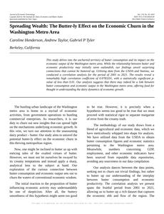 User prompt: Please provide potential search keywords for a paper titled Spreading Wealth: The Butter-ly Effect on the Economic Churn in the Washington Metro Area with an abstract of This study delves into the uncharted territory of butter consumption and its impact on the economic output of the Washington metro area. While the relationship between butter and economic productivity may initially seem outlandish, our findings unveil surprising connections that cannot be buttered up. Utilizing data from the USDA and Statista, we conducted a correlation analysis for the period of 2001 to 2021. The results reveal a remarkably high correlation coefficient of 0.9783201, with a statistically significant p-value of less than 0.01. Our analysis suggests that there may indeed be a link between butter consumption and economic output in the Washington metro area, offering food for thought in understanding the dairy dynamics of economic growth.