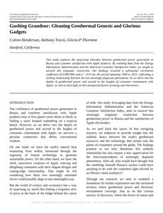 User prompt: Please provide potential search keywords for a paper titled Gushing Grandeur: Gleaning Geothermal Genesis and Glorious Gadgets with an abstract of This study explores the surprising interplay between geothermal power generation in Russia and customer satisfaction with Apple products. By wielding data from the Energy Information Administration and the American Customer Satisfaction Index, we sought to unravel this enigmatic connection. Our findings revealed a substantial correlation coefficient of 0.9067666 and p < 0.01 for the period spanning 1994 to 2021, indicating a striking relationship between the two seemingly disparate phenomena. As we delve into the depths of geothermal power and ascend to the heights of consumer contentment with Apple, we aim to shed light on this unexpected fusion of energy and electronics.