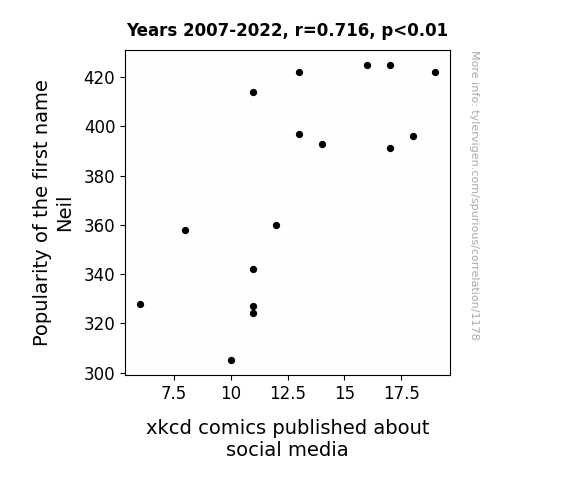 The impetus for this study arose from the peculiar observation that a disproportionate number of xkcd comics published between 2007 and 2022 seemed to feature themes related to social media, often waxing satirical, introspective, or both. This prompted us to inquire whether there might exist a previously unexplored linkage between the prevalence of the name "Neil" and xkcd's commentary on the evolving landscape of social media.
