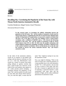 Recalling Sky: Correlating the Popularity of the Name Sky with Nissan North America Automotive Recalls Journal of Automotive Nameology Jan 2024 Reminder: This paper is AI-generated. Not real! |