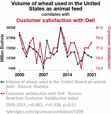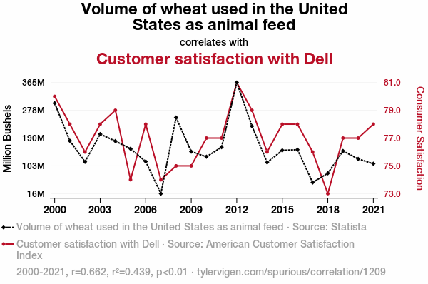 - The spurious research paper: From Wheat to Wires: Uncovering the Surprising Relationship Between Animal Feed Volume and Customer Satisfaction with Dell