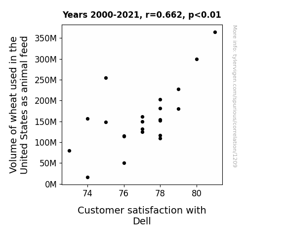 wheat volume, animal feed, customer satisfaction, Dell, correlation coefficient, Statista, American Customer Satisfaction Index