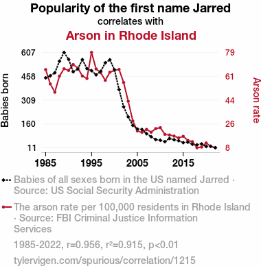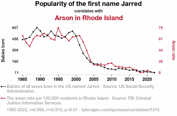 name popularity, arson, Rhode Island, "Jarred", correlation coefficient, Social Security Administration data, FBI Criminal Justice Information Services data