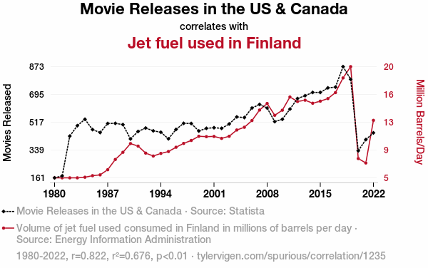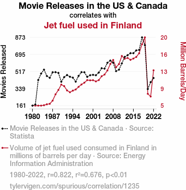 - The spurious research paper: Jetting to the Box Office: A Fuelish Connection Between Movie Releases in the US & Canada and Jet Fuel Consumption in Finland