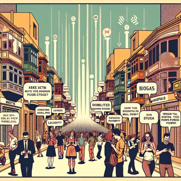 ChatGPT: [Scene: A bustling city street in Malta, filled with retro-style architecture and people walking around. The muted colors and dotted halftone pattern create a nostalgic vibe.] In the foreground, people are shown on their smartphones, with dotted speech bubbles emerging from the devices. The speech bubbles contain visuals of xkcd comics, each eliciting laughter from the individuals. The laughter emanates as dotted sound waves, blending with the city atmosphere. In the background, biogas plants are depicted with intricate details, showcasing the conversion of methane into biomass power. The plants exude energy, with dotted lines representing the transfer and utilization of power throughout the city. Overall, the scene evokes a retro, comic-book aesthetic, with the lively energy of the city and its gas-powered revolution taking center stage.