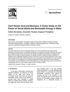 Can't Resist xkcd and Biomass: A Comic Study on the Power of Social Media and Renewable Energy in Malta Journal of Social Media and Renewable Energy Research Jan 2024 Reminder: This paper is AI-generated. Not real! |
