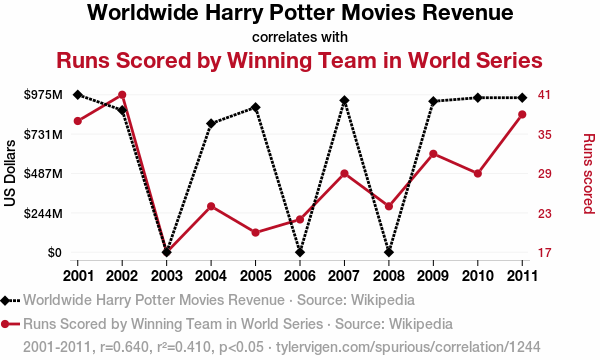 - The spurious research paper: The Magic of Box Office: A Wizarding World of Baseball-Cinema Correlations