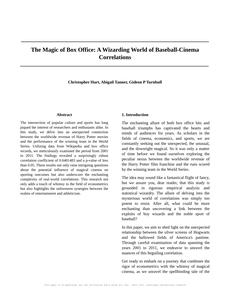 The Magic of Box Office: A Wizarding World of Baseball-Cinema Correlations Journal of Interdisciplinary Pop Culture Studies Jan 2024 Reminder: This paper is AI-generated. Not real! |