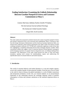 User prompt: Please provide potential search keywords for a paper titled Fueling Satisfaction: Examining the Unlikely Relationship Between Gasoline Pumped in Eritrea and Customer Contentment at Macy's with an abstract of This study explores the unexpected correlation between the volume of gasoline pumped in Eritrea and customer satisfaction levels at the renowned retail establishment, Macy's. Drawing on data from the Energy Information Administration and the American Customer Satisfaction Index, our research team conducted a robust analysis spanning the years 2005 to 2020. The analysis revealed a striking correlation coefficient of 0.7797306 and a statistically significant p-value of less than 0.01, highlighting a compelling relationship between these seemingly disparate variables. While conventional wisdom may suggest a lack of connection between Eritrean gasoline consumption and the shopping experience at a popular American department store, our findings challenge these assumptions. The implications of this study extend beyond the realm of retail and energy economics, opening novel avenues for interdisciplinary inquiry and underscoring the unpredictable nature of consumer behavior and market dynamics.