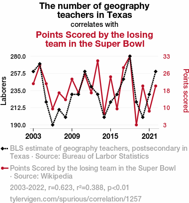 - The spurious research paper: Texas Teachers and Super Bowl Defeats: Unraveling the Tightened Ties