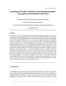 User prompt: Please provide potential search keywords for a paper titled Spreading the Wealth: A Butterly Connection Between Butter Consumption and McDonald's Stock Price with an abstract of In this paper, we delve into the unlikely and perhaps dairy-intense relationship between butter consumption and the stock performance of the fast food giant, McDonald's (MCD). Utilizing data sourced from the United States Department of Agriculture (USDA) and London Stock Exchange Group (LSEG) Analytics (Refinitiv), we set out to churn the numbers and analyze the fluctuations of butter consumption and MCD stock prices from 2002 to 2021.