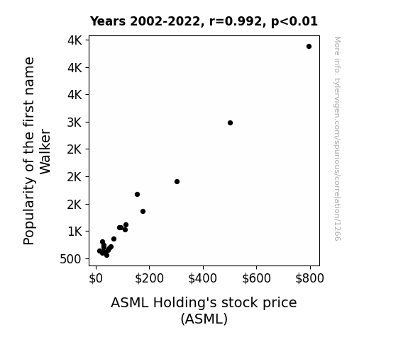 In this study, we investigate the curious relationship between the popularity of the name "Walker" and the stock price of ASML Holding. Utilizing data from the US Social Security Administration and LSEG Analytics (Refinitiv), we analyzed the correlation between the prevalence of the name "Walker" and the fluctuations in ASML Holding's stock price from 2002 to 2022. Our findings reveal a staggering correlation coefficient of 0.9918453 with p < 0.01, emphasizing a remarkably strong association between these seemingly unrelated variables.