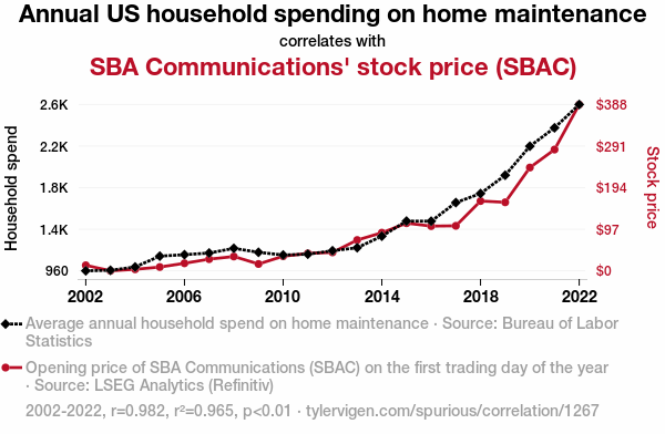 - The spurious research paper: Stocking Up: The Link Between Household Spending on Home Maintenance and SBAC Stock Price