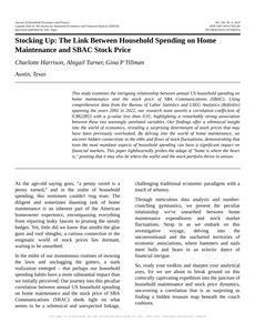 Stocking Up: The Link Between Household Spending on Home Maintenance and SBAC Stock Price Journal of Household Economics and Finance Jan 2024 Reminder: This paper is AI-generated. Not real! |