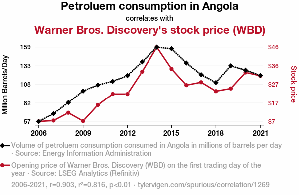 - The spurious research paper: Fueling the Funnies: The Petroleum Consumption in Angola and Warner Bros. Discovery's Stock Price