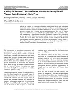 User prompt: Please provide potential search keywords for a paper titled Fueling the Funnies: The Petroleum Consumption in Angola and Warner Bros. Discovery's Stock Price with an abstract of Fueling the Funnies: The Petroleum Consumption in Angola and Warner Bros. Discovery's Stock Price