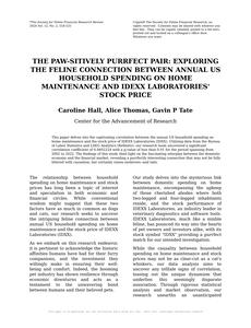 The Paw-sitively Purrfect Pair: Exploring the Feline Connection Between Annual US Household Spending on Home Maintenance and IDEXX Laboratories' Stock Price Journal of Feline Finance and Economics Jan 2024 Reminder: This paper is AI-generated. Not real! |
