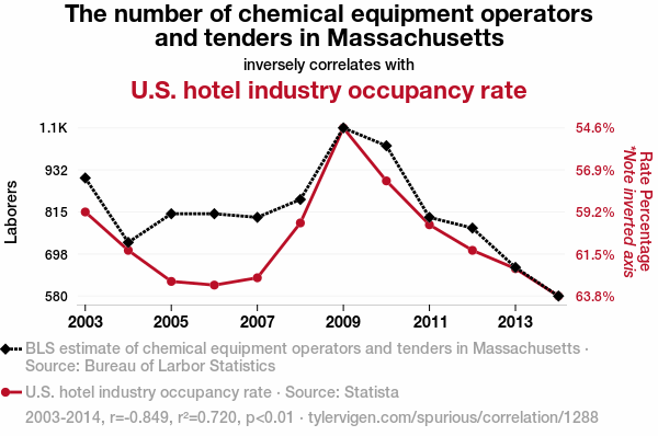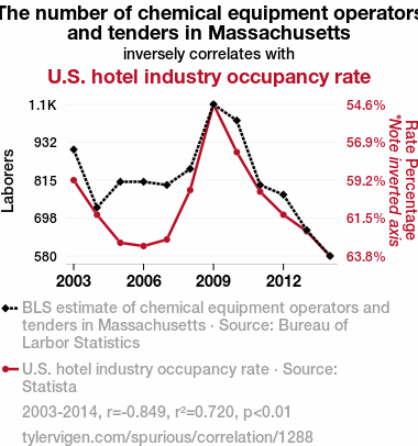 - The spurious research paper: The Chemical Conundrum: An Examination of the Correlation Between Chemical Equipment Operators and Tenders in Massachusetts and U.S. Hotel Industry Occupancy Rates