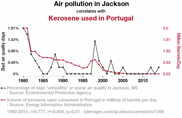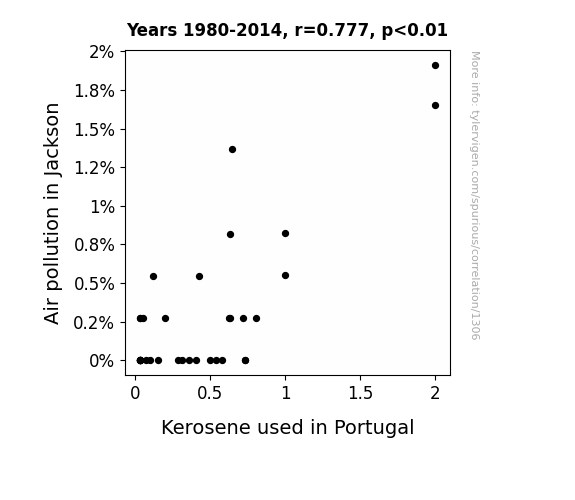 air pollution, kerosene usage, environmental pollution, correlation coefficient, Environmental Protection Agency, Energy Information Administration, air quality, energy usage, pollution in Jackson, kerosene in Portugal, combustion, correlation, statistical significance, research, investigation