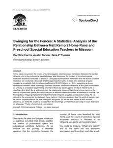 Swinging for the Fences: A Statistical Analysis of the Relationship Between Matt Kemp's Home Runs and Preschool Special Education Teachers in Missouri
