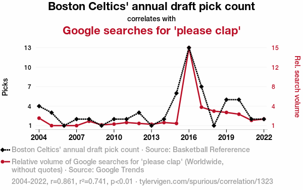 Boston Celtics, draft picks, Google searches, "please clap", correlation analysis, statistical humor, sports analytics, data analysis, public sentiment, public discourse, online behavior, sports fandom, unexpected connections
