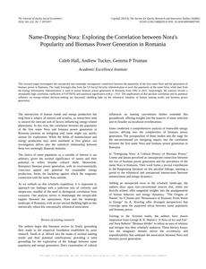 Please make up a literature review section of an academic research paper presenting the findings of the connection between Popularity of the first name Nora and Biomass power generated in Romania. Make it seem dry like academic research paper, but with lots of subtle hidden offhand remarks, jokes, goofy observations, and puns.