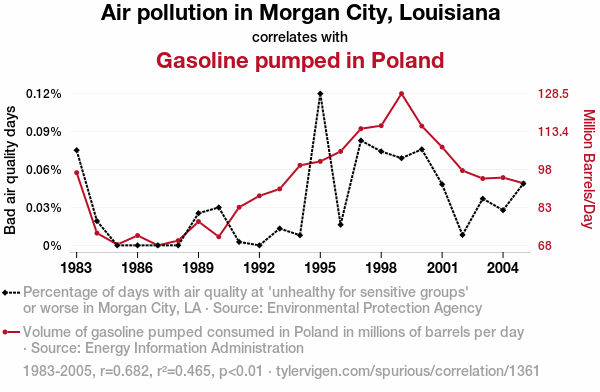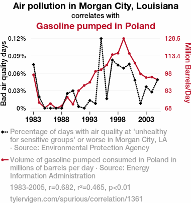 - The spurious research paper: A Breath of Fresh Air? The Unlikely Link Between Pollution in Morgan City and Gasoline in Poland
