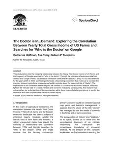 The Doctor is In...Demand: Exploring the Correlation Between Yearly Total Gross Income of US Farms and Searches for 'Who is the Doctor' on Google Journal of Agricultural Economics and Pop Culture Analysis Jan 2024 Reminder: This paper is AI-generated. Not real! |
