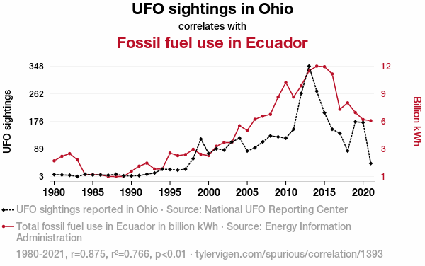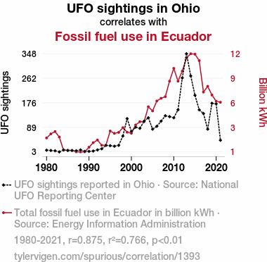 - The spurious research paper: Unveiling the Interstellar Interconnectedness: An Analysis of Ohio UFO Sightings and Ecuadorian Fossil Fuel Use